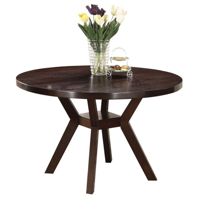 The Drake Dining Table is perfect in a small dining room, family room, or upscale breakfast nook. This dining table measures 48 inches around, which allows you to seat four guests comfortably. It’s well-crafted of Rubberwood, oak veneers, and engineered wood bathed in a deep espresso finish that works with any interior design. The angled pedestal base supports a square shelf that you can leave open or use as for display.