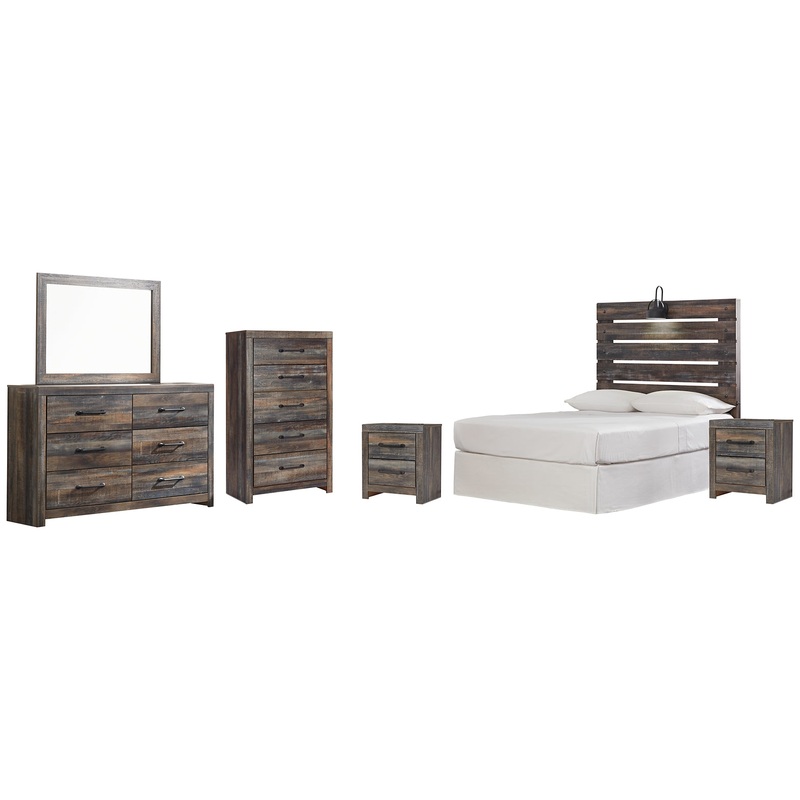 Be the first to review “Drystan Full Panel Headboard Bed with Mirrored Dresser, Chest and 2 Nightstands”