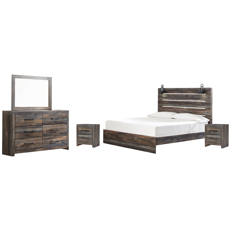 Drystan King Panel Bed with Mirrored Dresser and 2 Nightstands