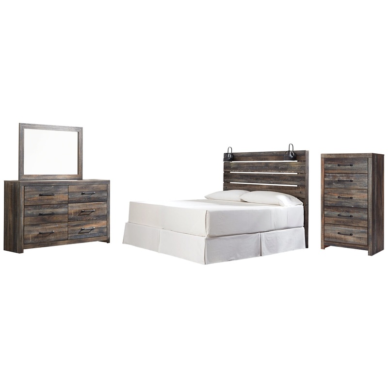 Drystan King Panel Headboard with Mirrored Dresser and Chest