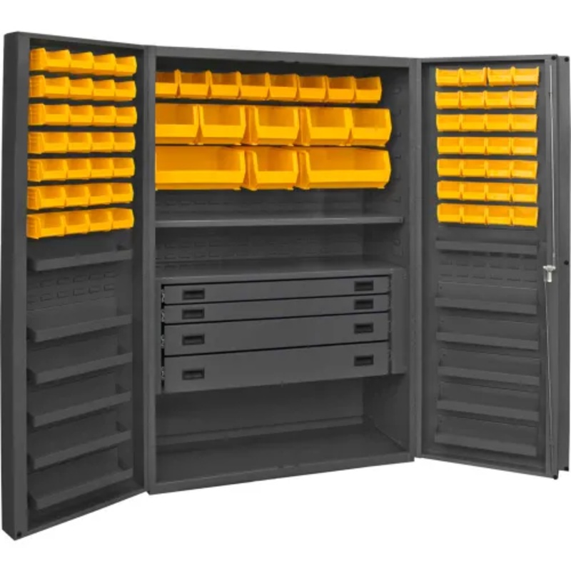 Durham Heavy Duty Work Bin Cabinet DCBDLP724RDR Deep Pocket Door – 4 Drawers 72 Yellow Bins 48x24x78