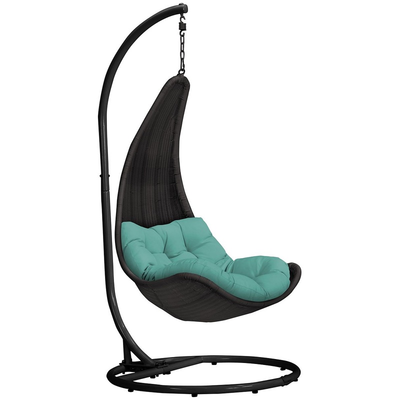 Model: 9706989Dimensions: 17.25w x 41.50h x 19.25lSeat cushion tie backs: yesAll features: rust resistant water resistant weather resistantIntended use: outdoorFabric colors: tealFrame materials: aluminumNumber of seat cushions: 1Fabric type: solution-dyed
