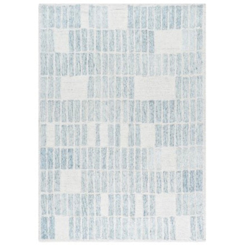 This area rug has a relaxed sensibility that's sure to suit coastal and casual aesthetics. Its artfully hand tufted geometric design adds both softness and style underfoot. With easy-breezy blue and ivory hues, the rug lends a soothing mood to your space.