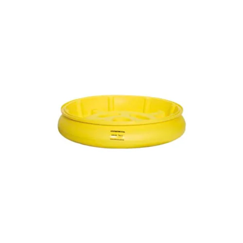 Eagle DRUM TRAY WITH GRATING - YELLOW WITH BLACK GRATINGDrum Tray is ideal for use under Drums where dispensing or filling takes place to catch incidental spills or leaks. Holds (1) 30 or (1) 55 gallon Drum, or use with grating (included) for 5 gallon Cont