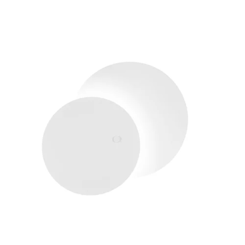 A play of light and shadow through the superposition of two disks. The user creates the illusion of an eclipse by rotating the top disk to reveal soft, indirect light.