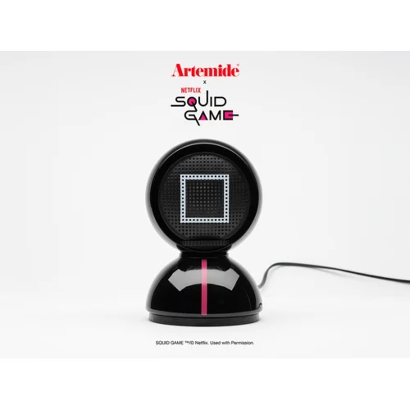The Eclisse x Squid Game Special Edition Black Officer table lamp by Artemide, designed by the esteemed Vico Magistretti, is a captivating fusion of iconic Italian design and contemporary pop culture.