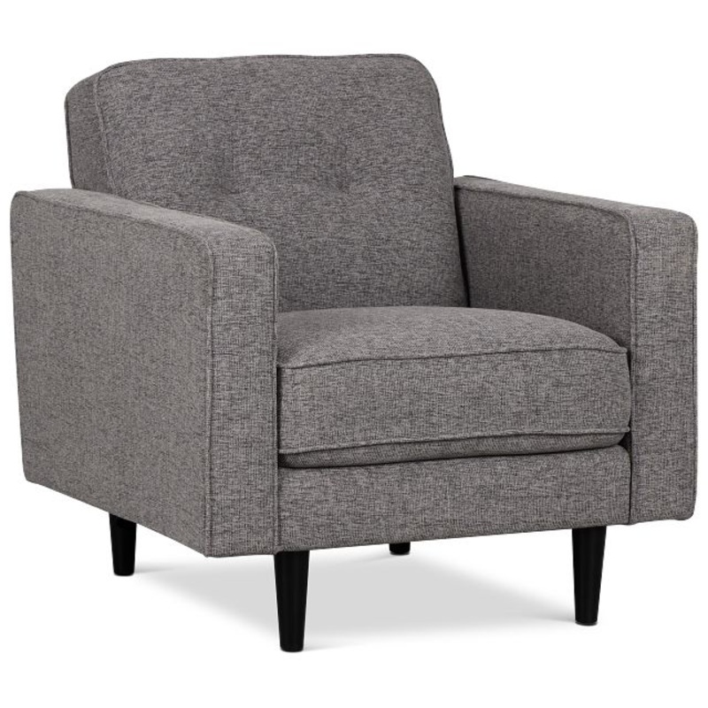 Model: 9730810Back height: 15Type of seating system: sinuous springSeat cushion type: attachedSeat depth: 22.8Seat cushion core material: foam and fiberPattern: solid colorLeg color: grayLeg material: metalNumber of seat cushions: 3Seat cushion thickness: