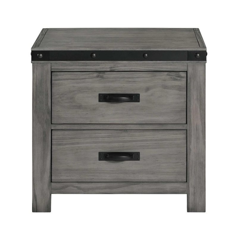 This Wade nightstand features a contemporary design that is complemented by the fusion of metal and wood, clean lines and a beautiful grey finish. It comes with brushed metal straps that contrast against warmth of the grey wood finish. The craftsmanship and design can make this a fantastic addition to a home.