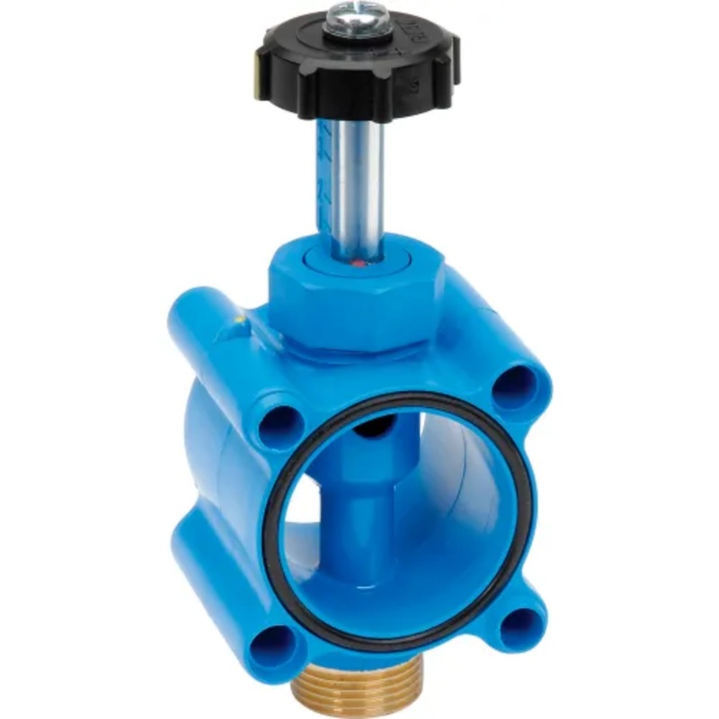 Blue return block with manual shut-off/balancing valve. Includes integral flow indicator for easy system balancing and diagnostics. 1 Year Limited Warranty.