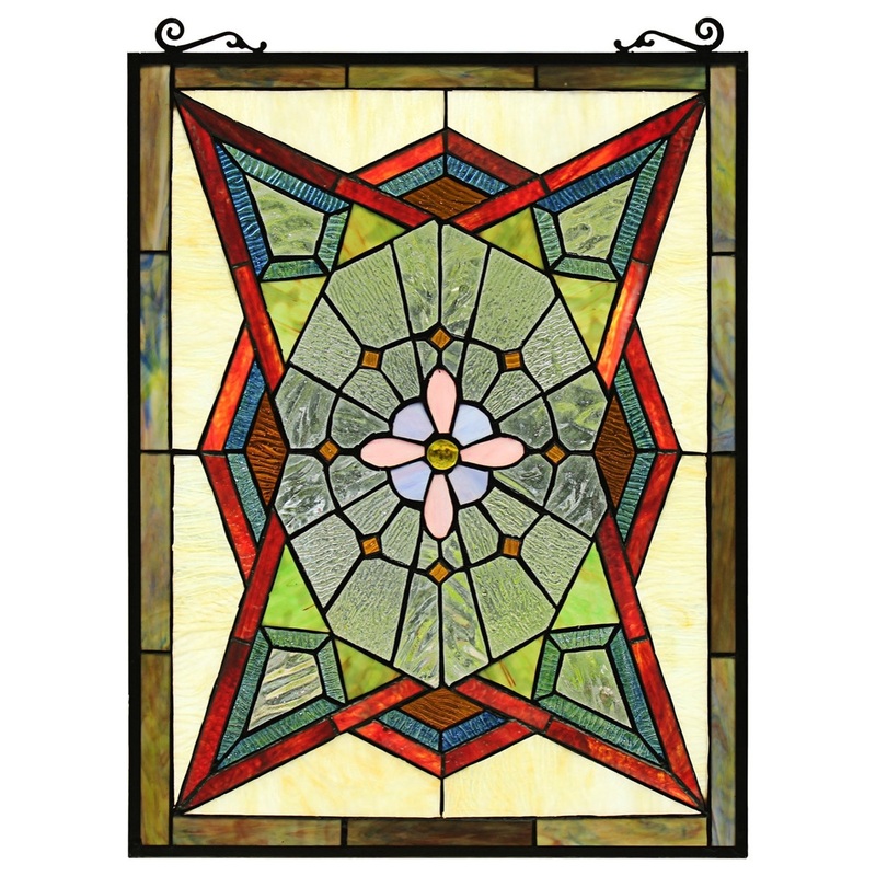 Eminent Tiffany-Style Geometric Stained Glass Window Panel 25″ Height – Stained Glass Panels – by Homesquare