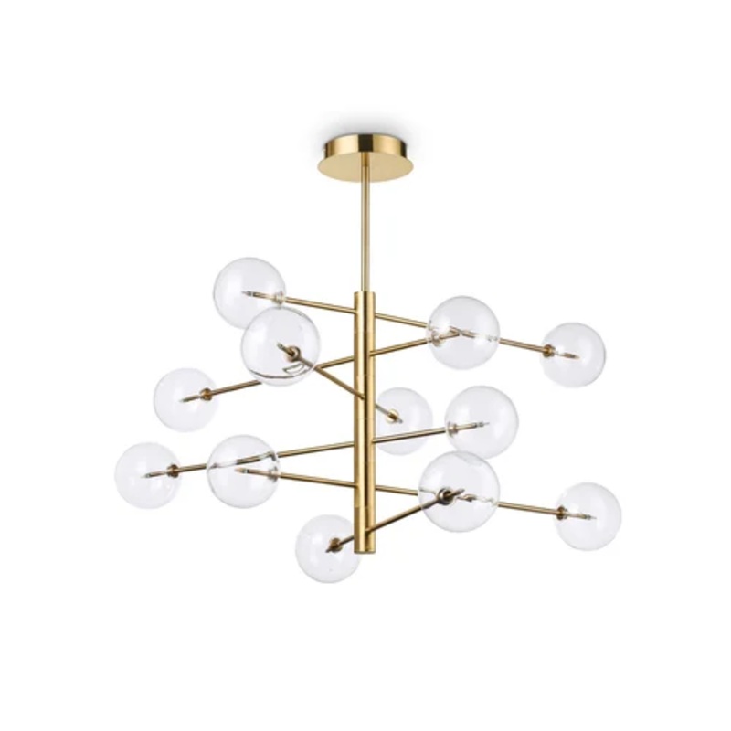 Equinoxe Sp12 represents a perfect harmony between modern design and refined functionality. Characterized by a structure made entirely of metal, this suspension lamp is completed by the presence of 12 delicate spherical diffusers made of transparent blown glass, which allow the light sources to evenly illuminate the interior, creating cozy and suggestive atmospheres. The peculiarity of this lamp, lies in the possibility of rotating the different cylindrical segments on which the diffusers are placed, making different compositions that will allow this lamp to easily adapt in any type of environment. Present in a living room, dining room or bedroom, Equinoxe Sp12 gives any space a touch of class and elegance.