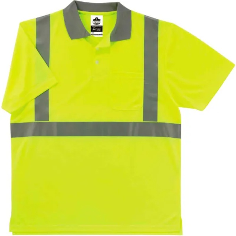 GloWear 8295 Class 2 Polo Shirt, Lime, 5-X-LargeClass 2 Polo Shirt: Birds eye knit for the boss man or anyone who wants to keep cool and be noticed ANSI-certified polyester breathable knit (4.4 oz.)Moisture wicking treatment3M Scotchlite Reflective Materia