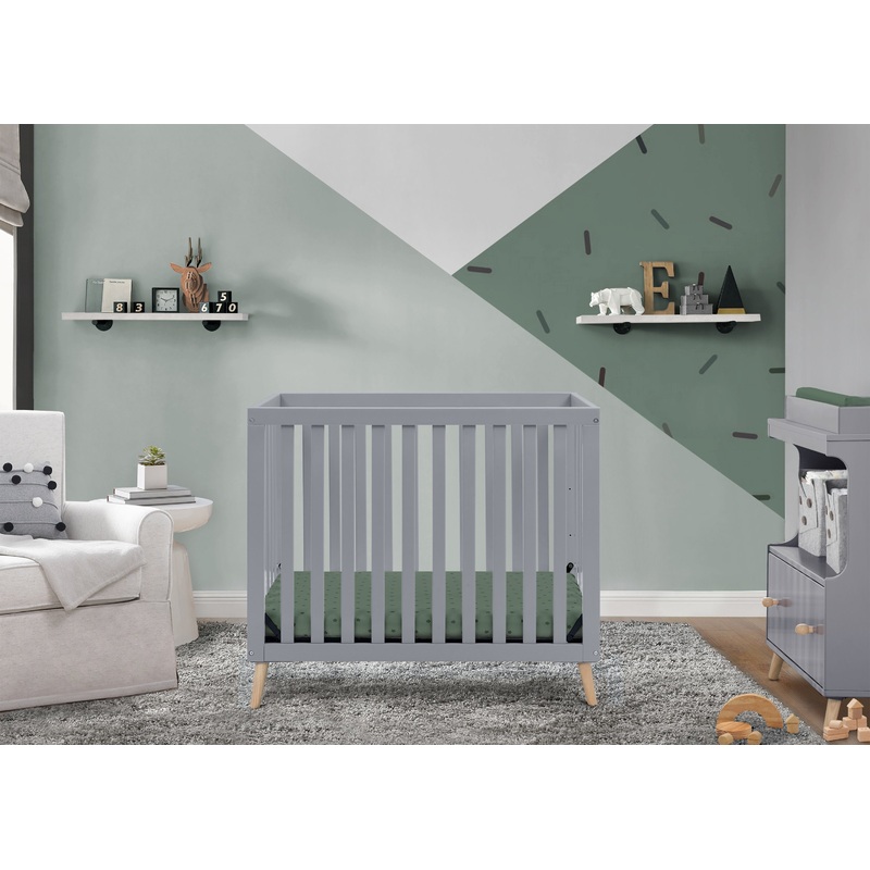 The Essex Convertible Mini Baby Crib with 2.75-Inch Mattress by Delta Children is full of modern style, safety features and craftsmanship, just in a scaled-down size. Designed for urban spaces, smaller nurseries or as a spare crib for grandma and grandpa's