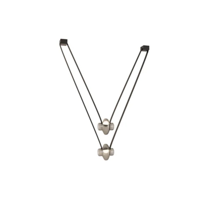 With its contemporary and sophisticated design, this lamp turns into a real piece of furniture that illuminates and enriches interiors with elegance. Characterized by the presence of two cubic rosettes, inside which a special electrically conductive strap made of extruded matte black polyurethane is inserted, available in various lengths, Etat-des-Lieux is further embellished by two beautiful and refined glass diffusers that give the lamp additional style and scenic presence. The direct beam of light produced by the light sources will realize a relaxing soft illumination in rooms, making them cozy and inviting. Placed in a living room, dining room or entrance hall, Etat-des-Lieux with its presence perfectly combines functionality and class in spaces.