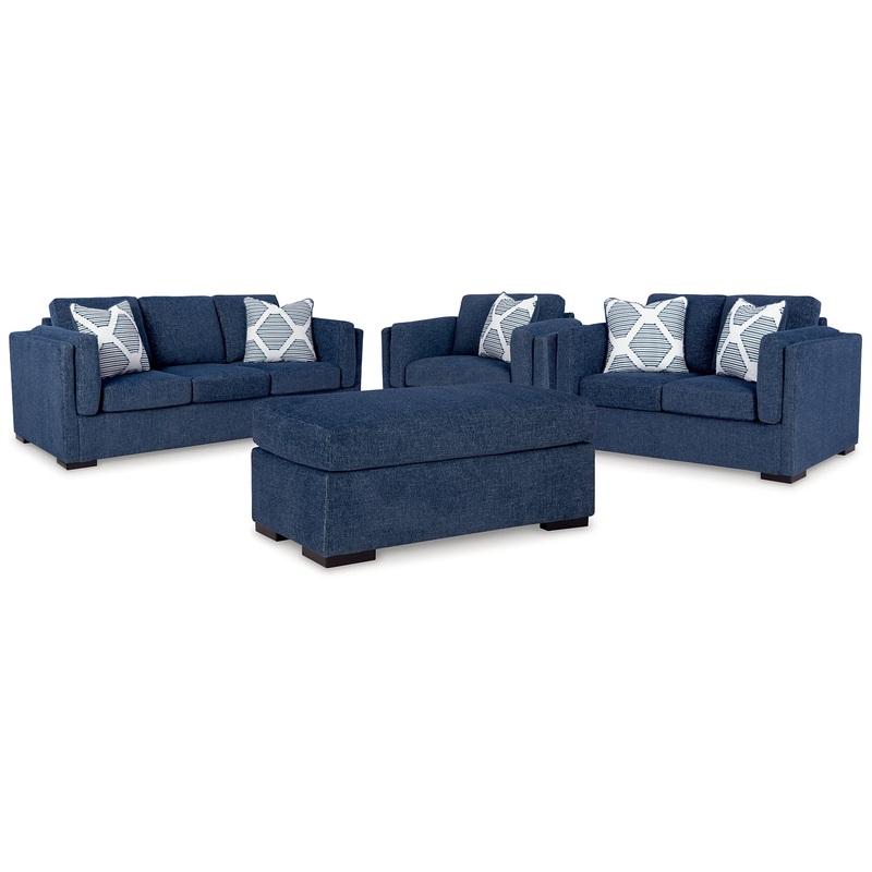 Casual contemporary style, meet carefree lounging. With this sofa and loveseat witch matching oversized chair and ottoman set, you dont need to sweat the small stuff. Thanks to its a fresh navy hue, you can stay right on trend when you relax solo or with g