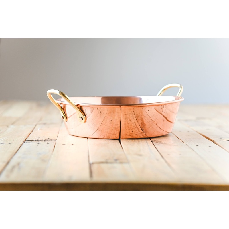 Construction: Each Fait Tout Pan is meticulously handcrafted to perfection, ensuring the highest quality and attention to detail. Made entirely of copper, with brass handles for added durability and style, this pan is built to withstand the test of time. Please note that due to the handmade nature of our products, slight variations and imperfections may occur, adding to the unique character of each piece.