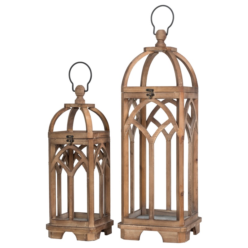 Farmhouse Natural Wooden Church Window Lanterns, Set of 2 – Transitional – Candleholders – by Glitzhome