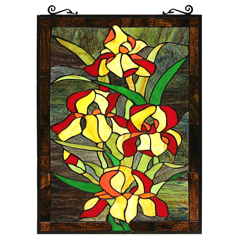 Fire Lily Tiffany-Style Floral Stained Glass Window Panel 25″ Height – Stained Glass Panels – by Homesquare