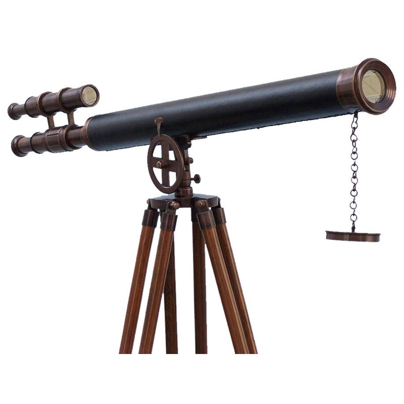The Hampton Nautical Floor Standing Bronzed With Leather Griffith Astro Telescope 65" with view finder is the pinnacle of our wide telescope selection. This beautiful bronzed telescope is mounted on a wooden tripod. This telescope is a beautifully function