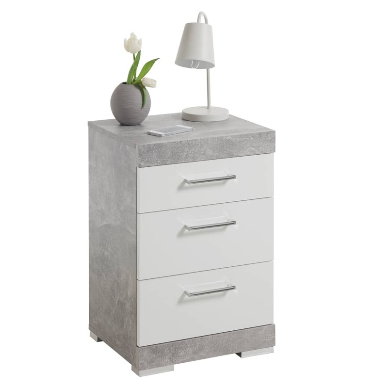 FMD Bedside Table with 3 Drawers Concrete Grey and Glossy White