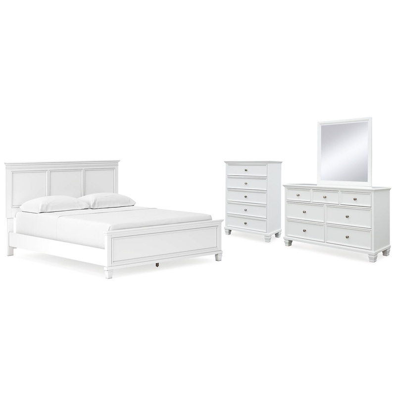 Fortman California King Panel Bed with Mirrored Dresser and Chest