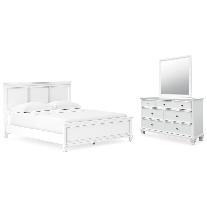 | Details | B680B5: Includes California king panel headboard, footboard and rails, Made with hardwood solids and MDF substrate, White painted finish, Tapered feet, Foundation/box spring required, sold separately, Mattress available, sold separately, Assembly required, Bed is compatible with an adjustable base, B680B1: Includes dresser and mirror, Made with hardwood solids and MDF substrate, White painted finish, 7 smooth-gliding drawers with dovetail construction and ball-bearing side glides, Round metal drawer knobs with satin nickel-tone finish, Tapered feet, Mirror attaches to back of dresser, Assembly required, |