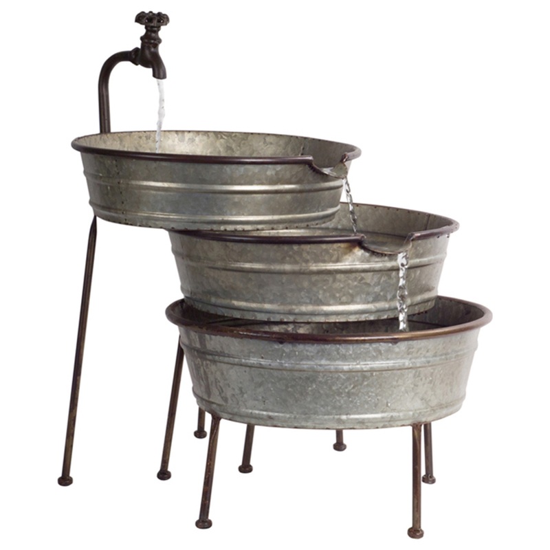Water flows from a charming, vintage look faucet into three aged galvanized tubs resembling old washstands. Unique design is on trend for farmhouse styling. UL pump included. -Width: 32 -Depth: 20 -Height: 26Model # (MPN)70012Product ID176165391Manufacture