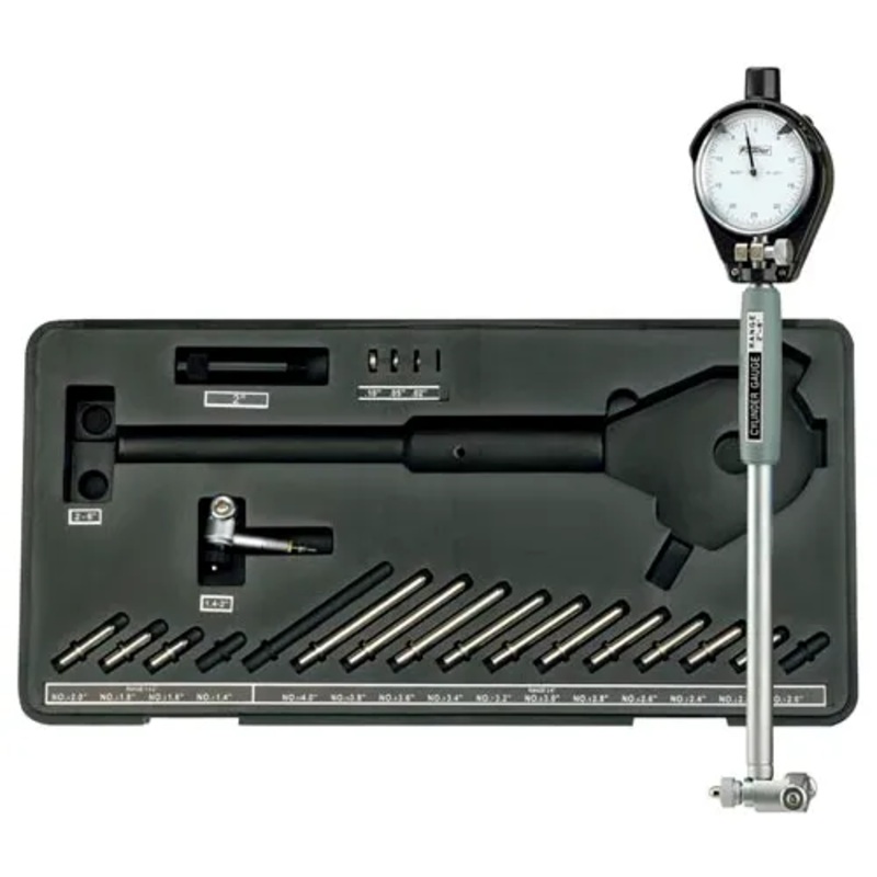 Fowler X-Tender 1.4" to 6" Dial Bore Gage SetThe industries two most popular bore gage ranges combined in one set!Carbide AnvilsEasy-to-readEconomicalGraduation: .0005"Insulated grip1.4" to 6" rangeChrome plated handle.Includes extension holder and fitted