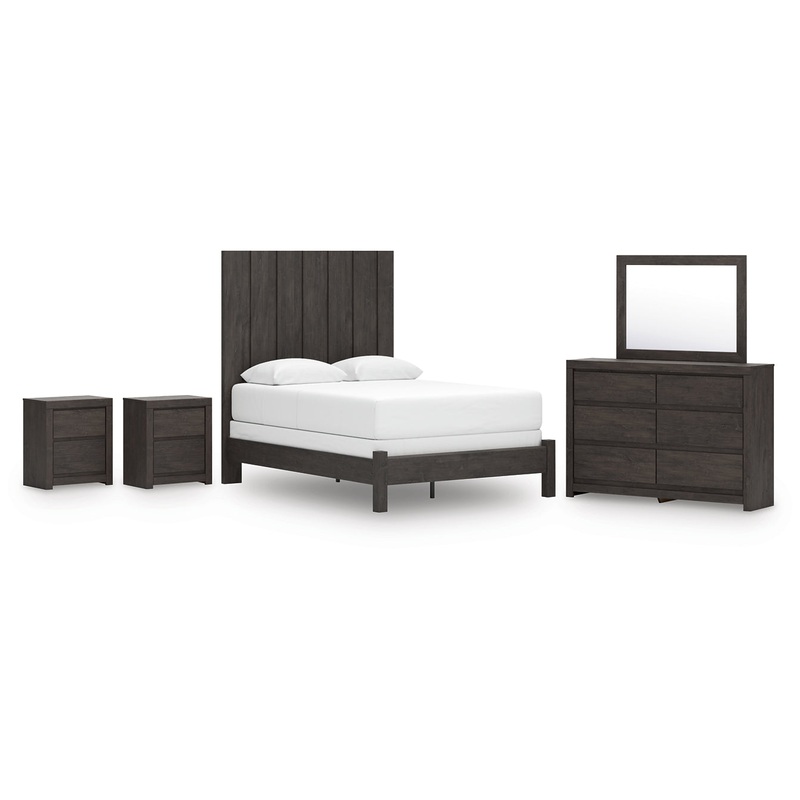 Find serene simplicity in the clean lines and dark neutral tones of this bedroom package. Its a sincere approach to modern elegance, giving you high style at a great value. A sleek hardware-less design creates a fuss-free look. Short on storage? Smooth-gliding drawers keep clothes and clutter neatly tucked away.