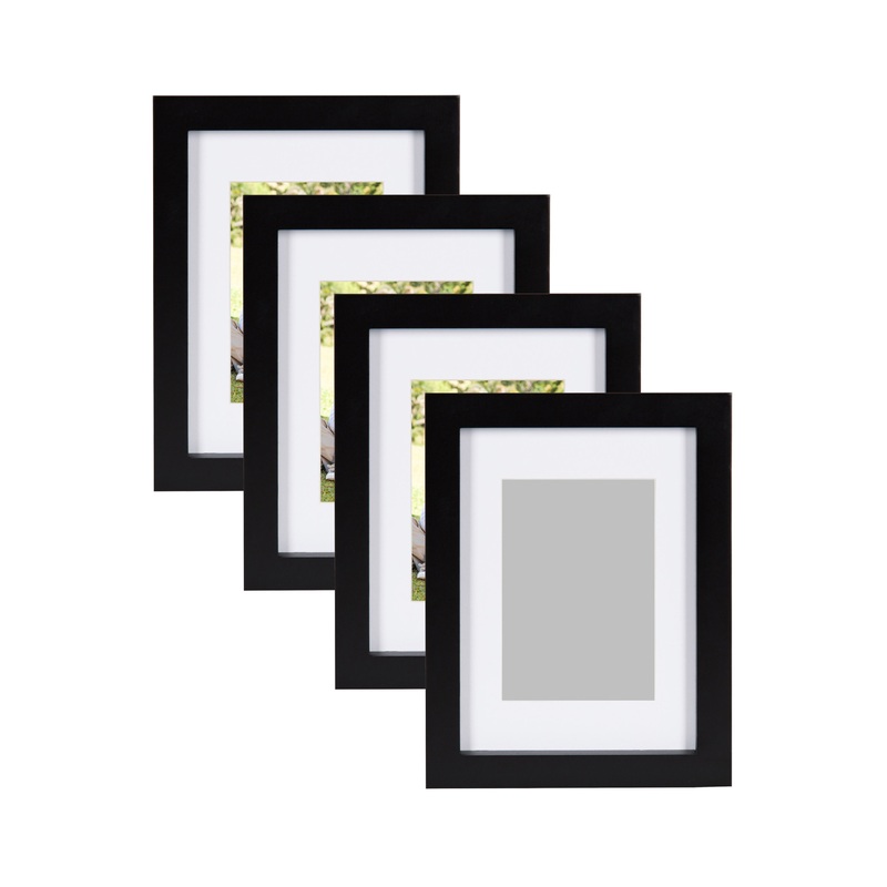 Turn your home dcor into a gorgeous wall gallery display! This classic frame has a beautiful rich satin finish with a sturdy wood construction. Each frame will highlight your art prints or own treasured photos beautifully. Combine with other frames in the collection to create beautiful and contemporary art galleries on your own wall. Set of 4 frames. Each frame holds an 8×10 photo with included white mat or 11×14 photo without the mat. Constructed of wood with satin black finish.Includes hangers on back for wall display; Can be displayed horizontally or vertically; Glass included.Frame profile is 0.75 inches wide and 0.75 inches deepOuter frame dimensions are 12 inches by 15 inches by 0.75 inch depth.
