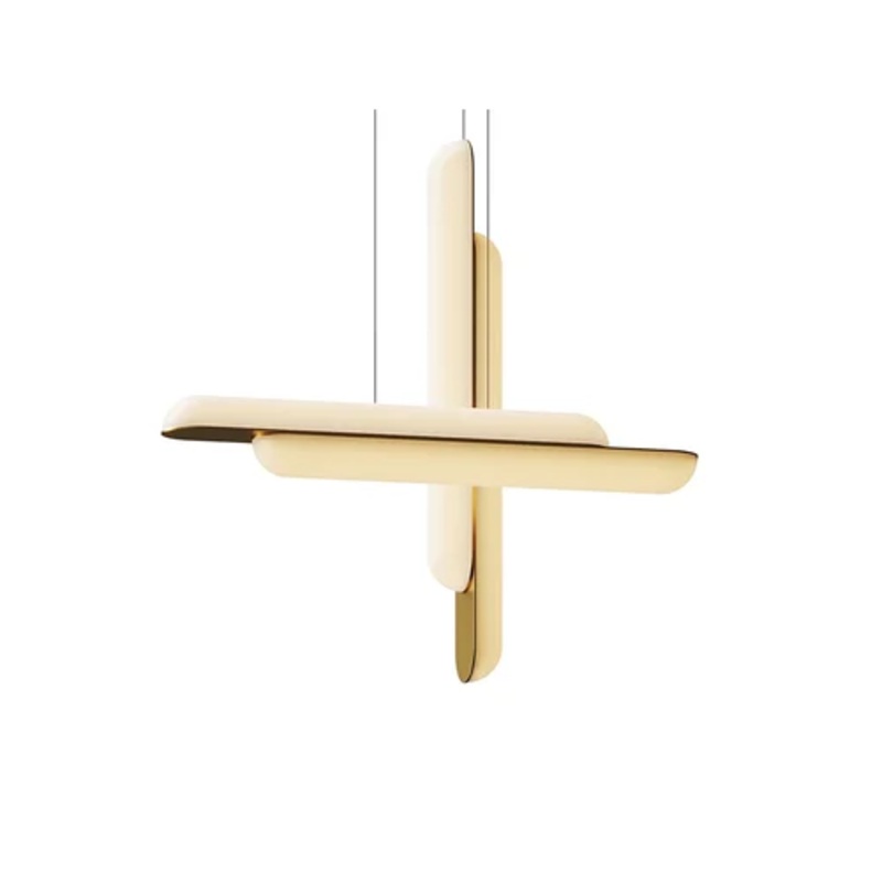 Inspired by the Art Deco style popular in Europe and the United States since the 1920s and characterized by classic and measured forms, this elegant pendant will be an undisputed protagonist of interiors. Gemini is composed of two opposing opaline acrylic halves that connect asymmetrically to create a single illuminated linear product. To be hung horizontally or vertically, this lamp consists of an illuminated capsule that is cut and moved to reveal a brushed brass facade, giving it additional class. Projecting a soft and inviting beam of light, Gemini placed in a living or dining room, pays homage to rooms with pleasant lighting that can create fascinating and unique atmospheres.