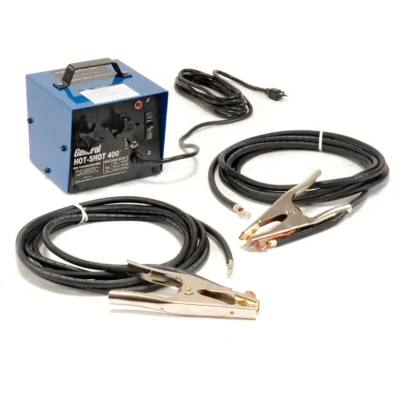 General Pipe Cleaners Hot-Shot Pipe Thawing Machine - With #1 Cables and ClampsThis 320/400 amp unit is solidly manufactured for long lasting dependability. Saves time and money by eliminating the need to tear up floor, break through walls and digging up p