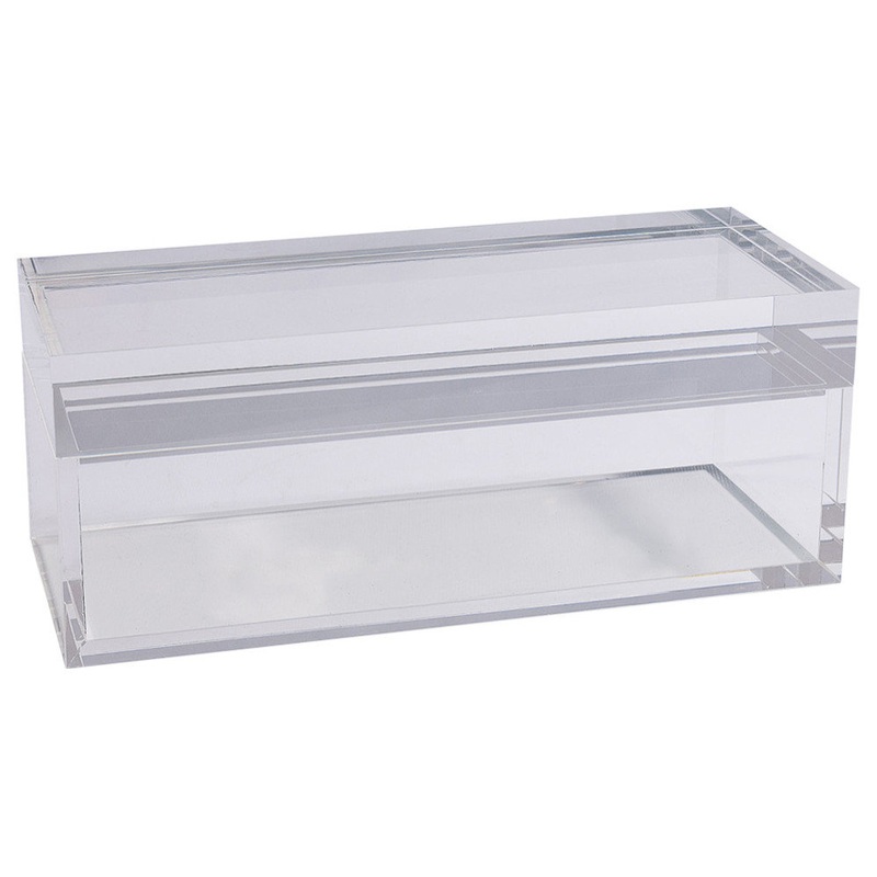 Clean, modern and ever so contemporary--the Glencoe box is the perfect little storage box. Display your jewelry, glasses, collectibles, and even the tv remotes. As the bottom is clear, the top features tops in solid translucent lucite in green, blue red, a