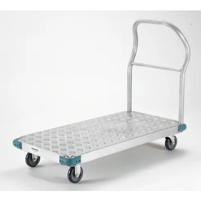 ALUMINUM DIAMOND DECK PLATFORM TRUCKMaximum strength, lightweight deck makes this the perfect choice for moving bulk product. All-welded 10 gauge aluminum deck with a 7 gauge aluminum channel frame ensures long life and resists corrosion. Slip-resistant di