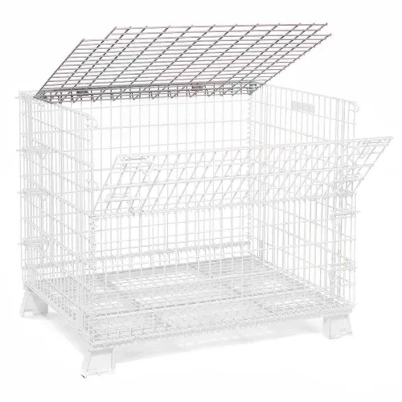 HINGED LIDOpen mesh construction provides excellent visibility, easy inventory control and eliminates dust and dirt build up. The hinged lid is padlockable for security. Durable powder coat finish resists rust and corrosion. Sets up in seconds!