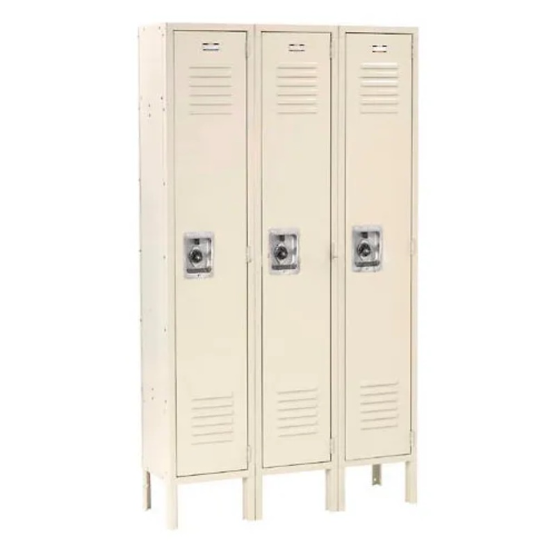 Global Industrial Infinity 1-Tier 3 Door Locker, 45″W x 18″D x 78″H, Tan, Unassembled