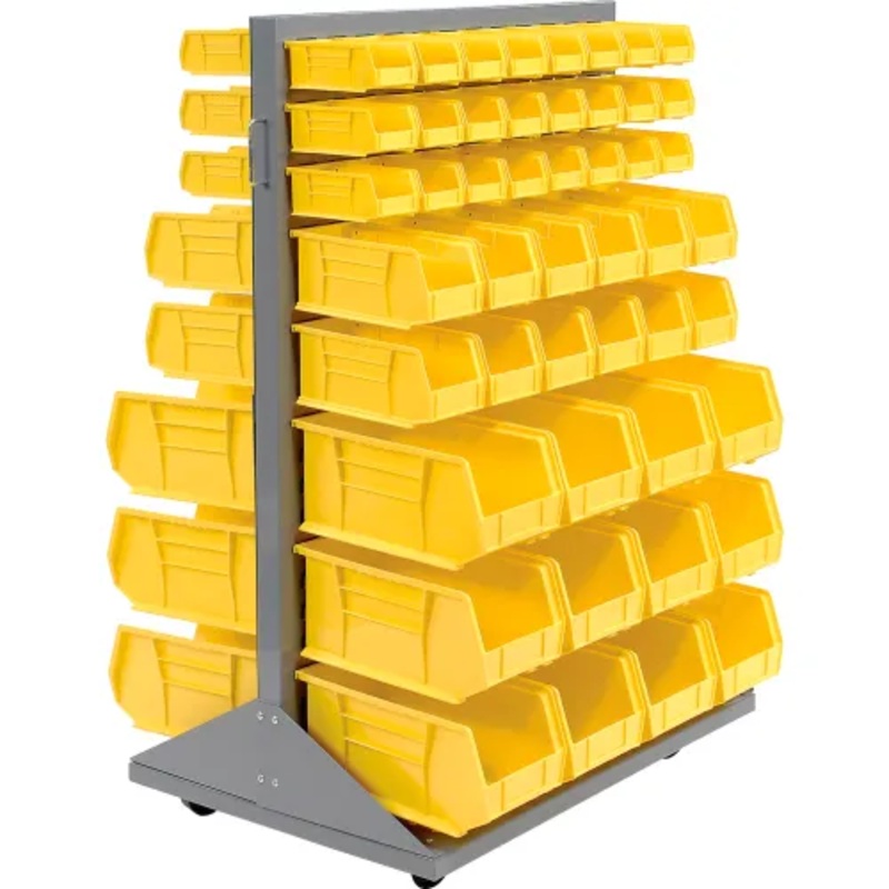 Global Industrial Mobile Floor Rack w/ 48(C), 24(D), 24(F) Yellow Bins, 36″W x 25-1/2″D x 55″H