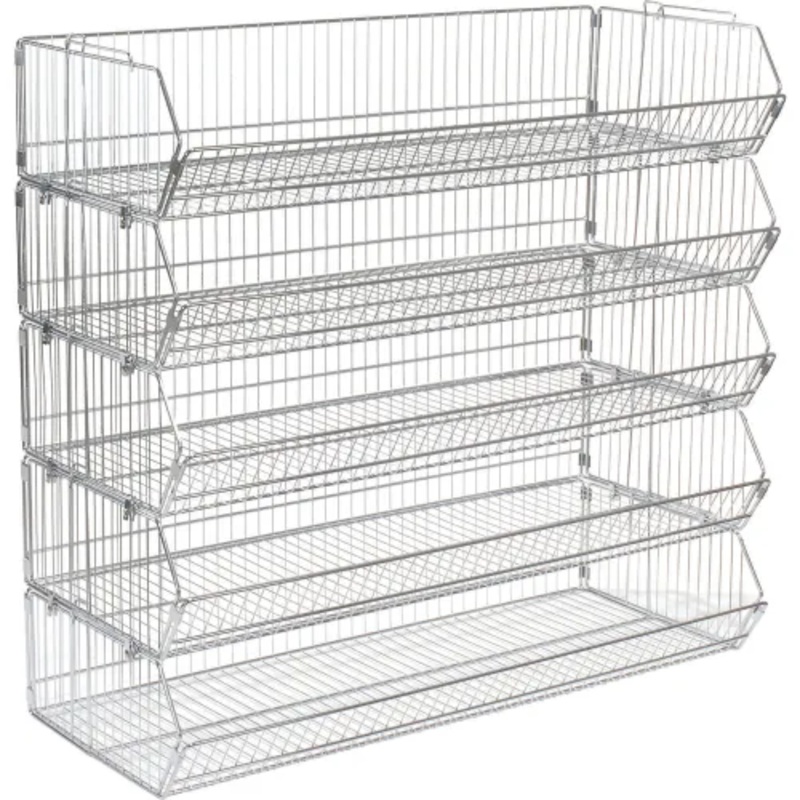 Global Industrial Modular Wire Stacking Bin Basket Rack, 48″W x 20″D x 45″H, 5 Wire Bins