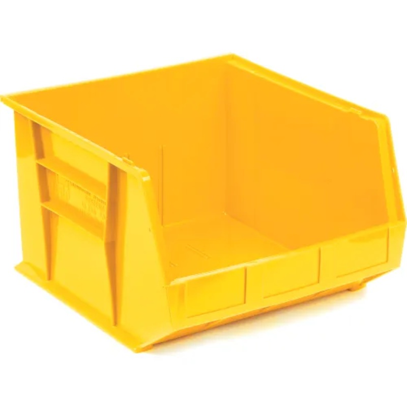 ✓ 80-pound weight capacity✓ Reinforced walls prevent bulging & allows stacking✓ Made in the USA This 3-pack of yellow Global Industrial 18"L x 16-1/2"W x 11"H Plastic Hang & Stack Bin features reinforced walls that add strengt