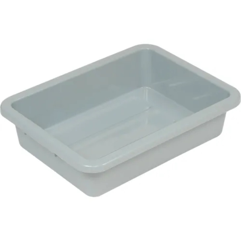 Can be used as a bus box in restaurants, on conveyor systems for transporting goods or used in airports and areas with security checks. Conveniently stores personal belongings to pass security areas. Durable gray polyethylene tote is corrosion resistant. Provides excellent service for storing a wide range of items. Tote is nestable when not in use for convenient space saving storage. Measures 20-1/4″W x 15-1/4″D x 5″H.