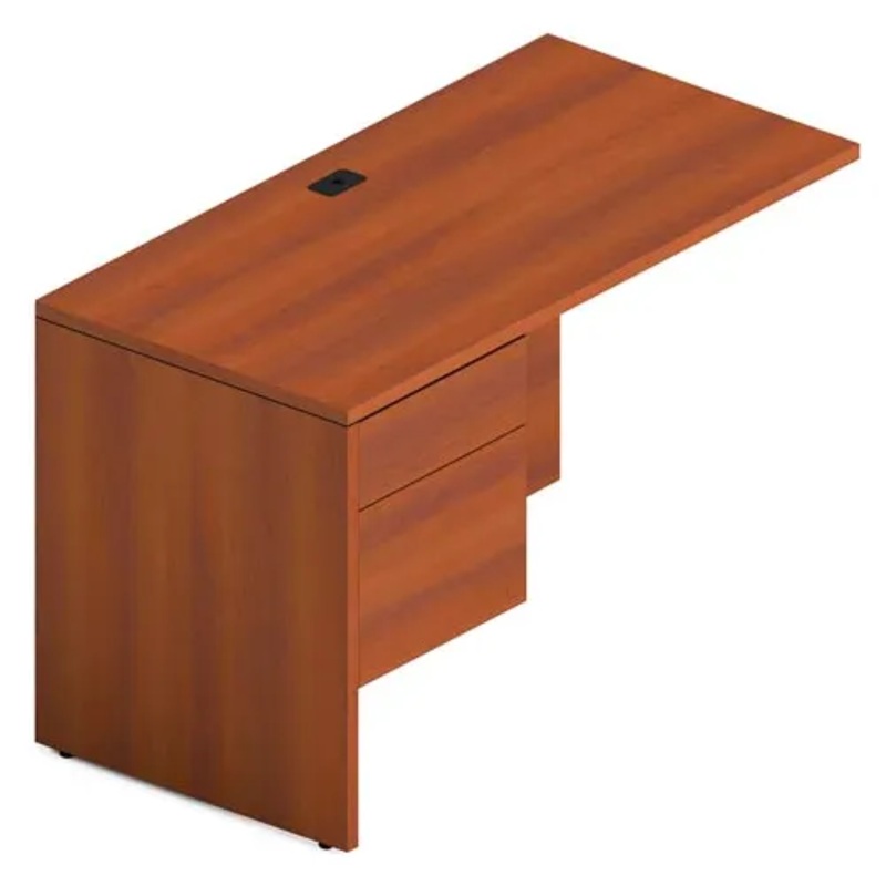Standard with box/file drawer pedestal, one pencil tray, and pedestal locks. Pedestal is on the right. All surfaces are constructed from Global’s exclusive premium grade, high performance laminate and finished in 3mm thick matching edges. Avant Honey Finish. 48″W x 24″D x 29″H Overall.