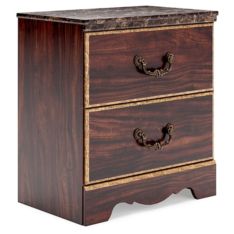 • Glossy reddish-brown finish over replicated cherry grain, paired with faux stone