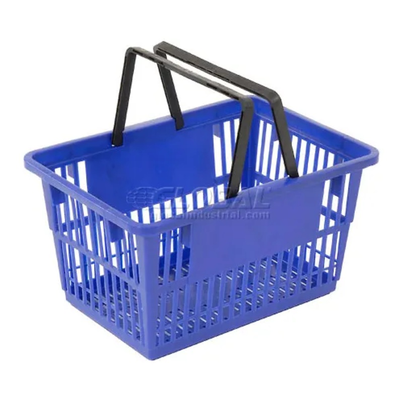 Good L Corp. Plastic Shopping Basket with Plastic Handle, Standard, 17"L X 12"W X 9"H, BlueOpen mesh design provides air circulation and high visibility for parts picking or grocery shopping, Lightweight, rigid construction for up to 100 lb. capacity. Stur