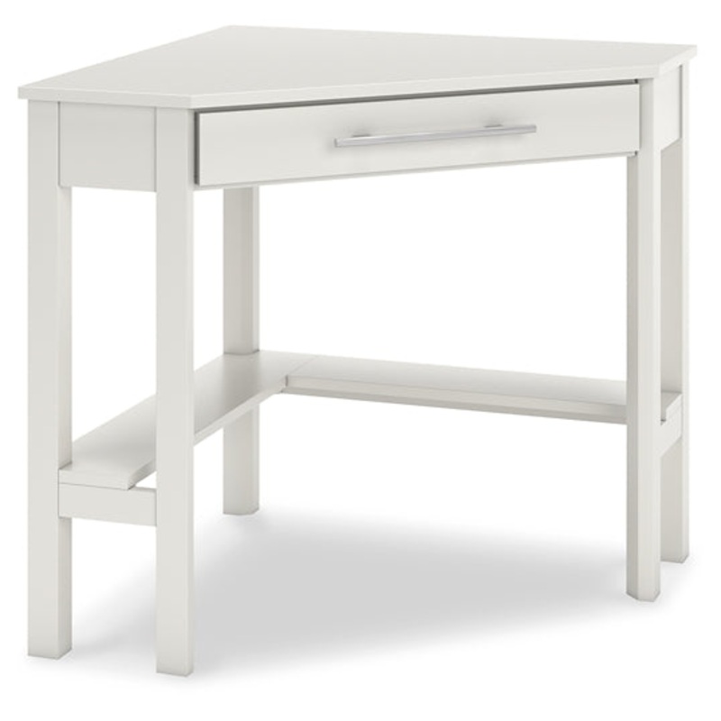 Clean-lined design takes center stage with the Otaska home office corner desk. Well-suited to small spaces, this desk leaves a small footprint as it seamlessly fits into corners. A center storage drawer keeps essentials close, while the crisp white finish