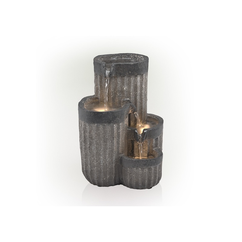 Gray Cascading Pillar Tabletop Fountain with LED Lights