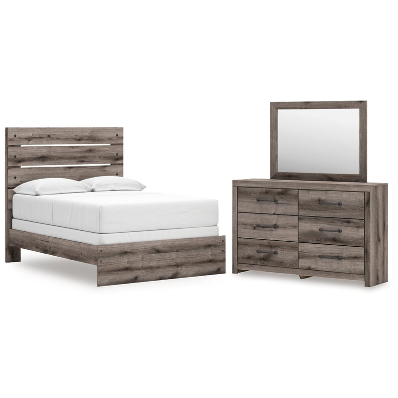 Graystorm Full Panel Bed with Mirrored Dresser