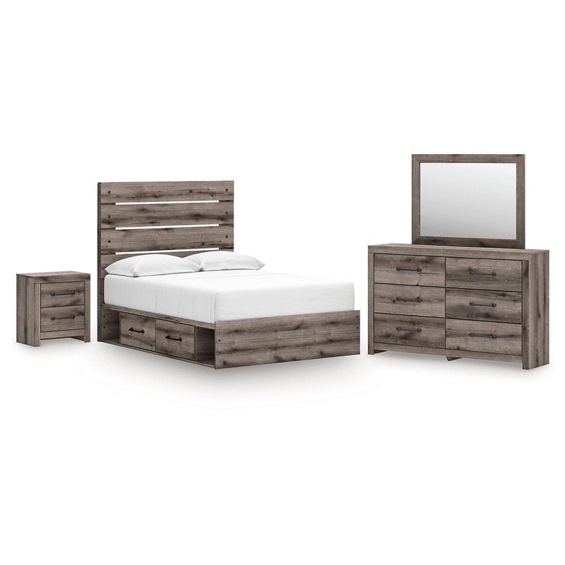 Graystorm Full Panel Bed with Storage with Mirrored Dresser and Nightstand