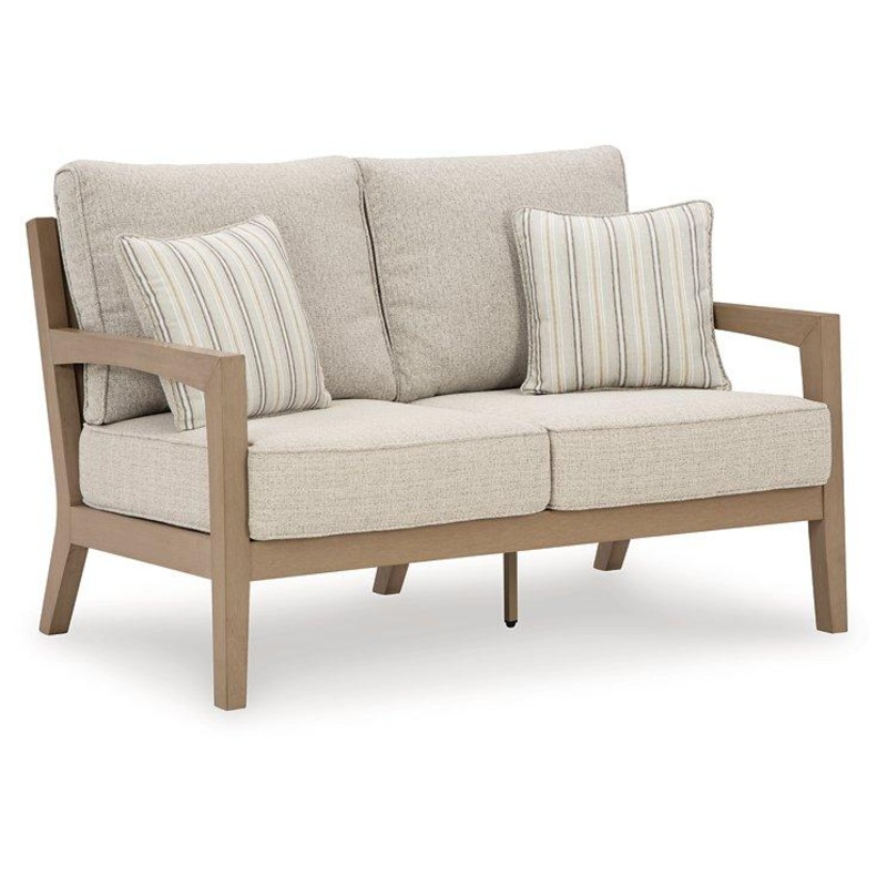 This loveseat is a beautiful addition to any outdoor living space. Effortless in its simplicity, this piece echoes your easygoing sensibilities. Combining durable, cutting-edge engineered materials, its Weatherwood construction enhances the contemporary design. Rest assured, the thick cushions and accent pillows are wrapped in high-performance fabric thats fade-resistant, stain-resistant and a breeze to clean. Pair with the matching sofa and swivel lounge chair for a spectacular seating arrangement.
