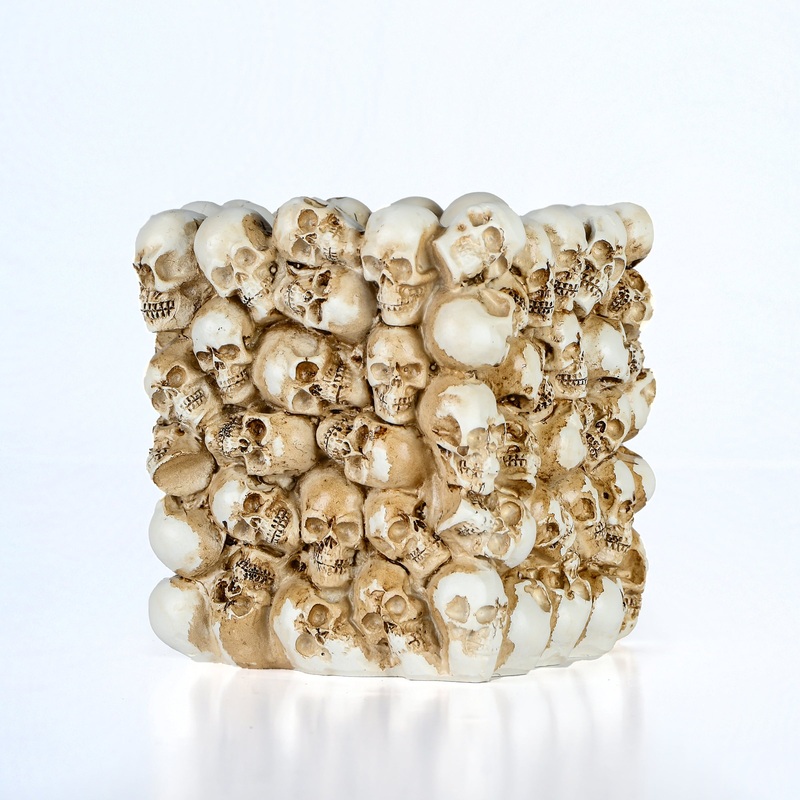 - This harrowing Halloween decoration features a motif of creepy skulls stacked together to form the thick pot walls, creating the perfect container for plant, pens, or candy