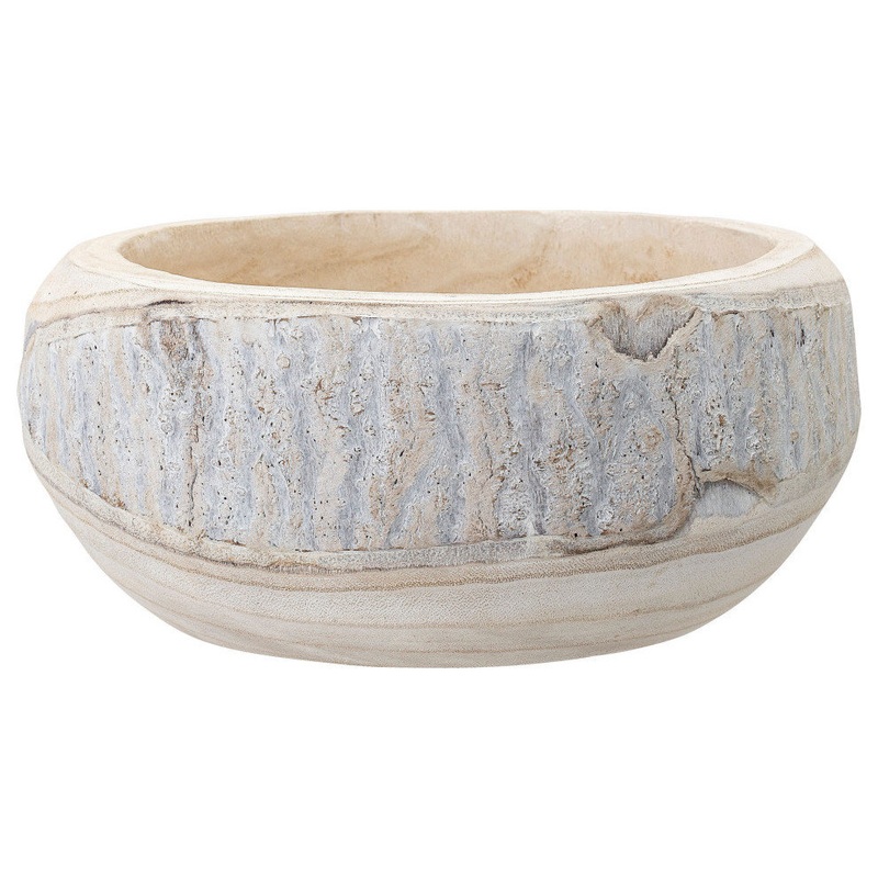 -A rustic and natural bowl, this decorative hand-carved paulownia wood bowl features a whitewashed finish that enhances the wood grain and texture